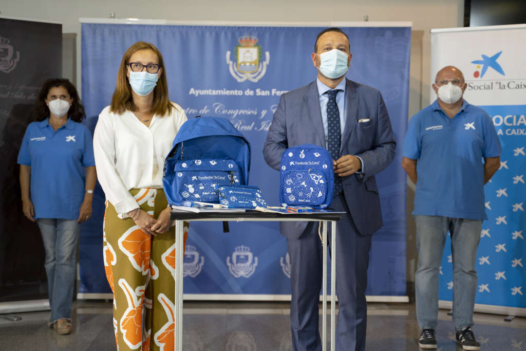 En un acto celebrado en el Centro de Congresos “Cortes de la Real Isla de León”, el Ayuntamiento de San Fernando ha recibido la entrega de más de 400 kits escolares donados por la Fundación ‘La Caixa’ y CaixaBank y que serán repartidos entre menores de entre 3 y 16 años de edad en situación vulnerable de la localidad con el objetivo de que la vuelta al colegio de estos escolares se produzca en condiciones igualitarias respecto al resto de sus compañeros.