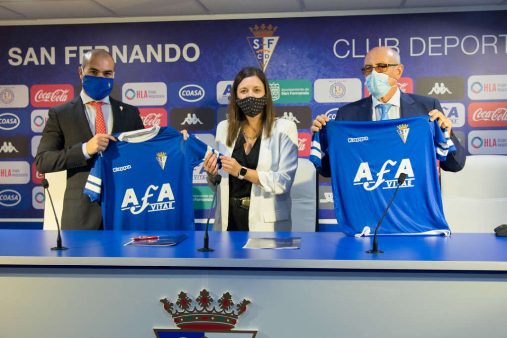 En la tarde del viernes se llevó a cabo, en una presentación en la modernizada sala de prensa del San Fernando CD, el acto previsto para dar a conocer que AFA Vitae, la asociación de familiares de enfermos de Alzheimer de San Fernando, lucirá en el frontal de la camiseta en un convenio de colaboración benéfica suscrito entre la entidad isleña y la asociación de la ciudad. El evento contó con la presencia de Patricia Cavada, alcaldesa de San Fernando, y de Francisco Pavón, presidente de AFA Vitae.