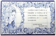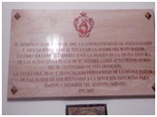 El día 14 de agosto II mileno del nacimiento de Cristo, para mayor gloria de la Reina del cielo, Fray Antonio Ruiz de Castroviejo y alba, capuchino de Jerez, dona a esta ciudad de san Fernando este azulejo, preludio del MMIII en cuyo glorioso día del 24 de junio de MDCCIII la emperatriz del cielo bajó de Pastora, ante los ojos benditos del Vble. Fray Isidoro de Sevilla.