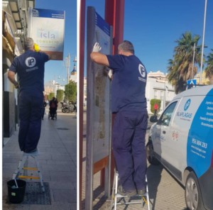 Acosafe en colaboración con el Ayuntamiento de San Fernando, ha puesto en marcha una operación de limpieza de los mupys y señalizaciones peatonales del Centro Comercial Abierto Isla Comercio.