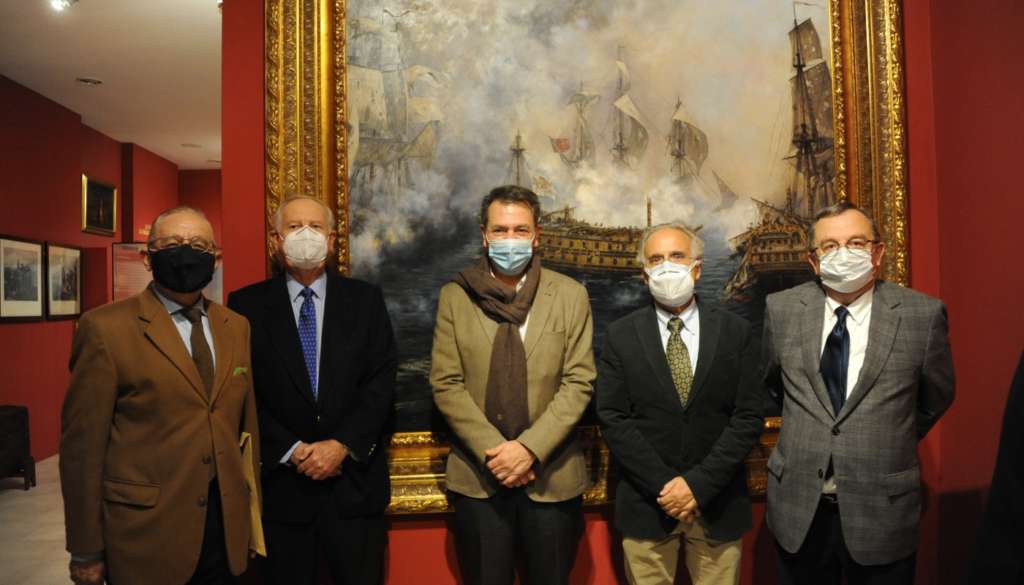 El presidente y varios miembros de la junta de gobierno de la Real Academia de San Romualdo de Ciencias, Letras y Artes han estado presentes este viernes, 20 de noviembre, en el acto celebrado en el Museo Naval de San Fernando con motivo de la presencia del pintor y académico Augusto Ferrer-Dalmau, después de que horas antes haya llegado a la ciudad una de las obras más prestigiosas del artista catalán: El último combate del Glorioso, cuadro pintado en el año 2014 y que desde que fuera entregado entonces en una solemne ceremonia presidida por Su Majestad el Rey Don Felipe VI, se encontraba en el Museo Naval de Madrid. Ahora, el óleo ha sido trasladado a su nueva ubicación, el Museo Naval de San Fernando, con lo que ello significa tanto para el propio recinto histórico cultural como para la ciudad.