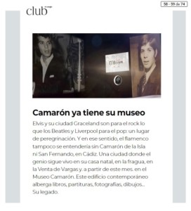 En la publicación del mes de agosto, revista número 53, página 58, tratan del edificio Museo Camarón nombrando, como no también, a la Casa Natal del cantaor isleño, al mítico restaurante Venta de Vargas y la fragua.