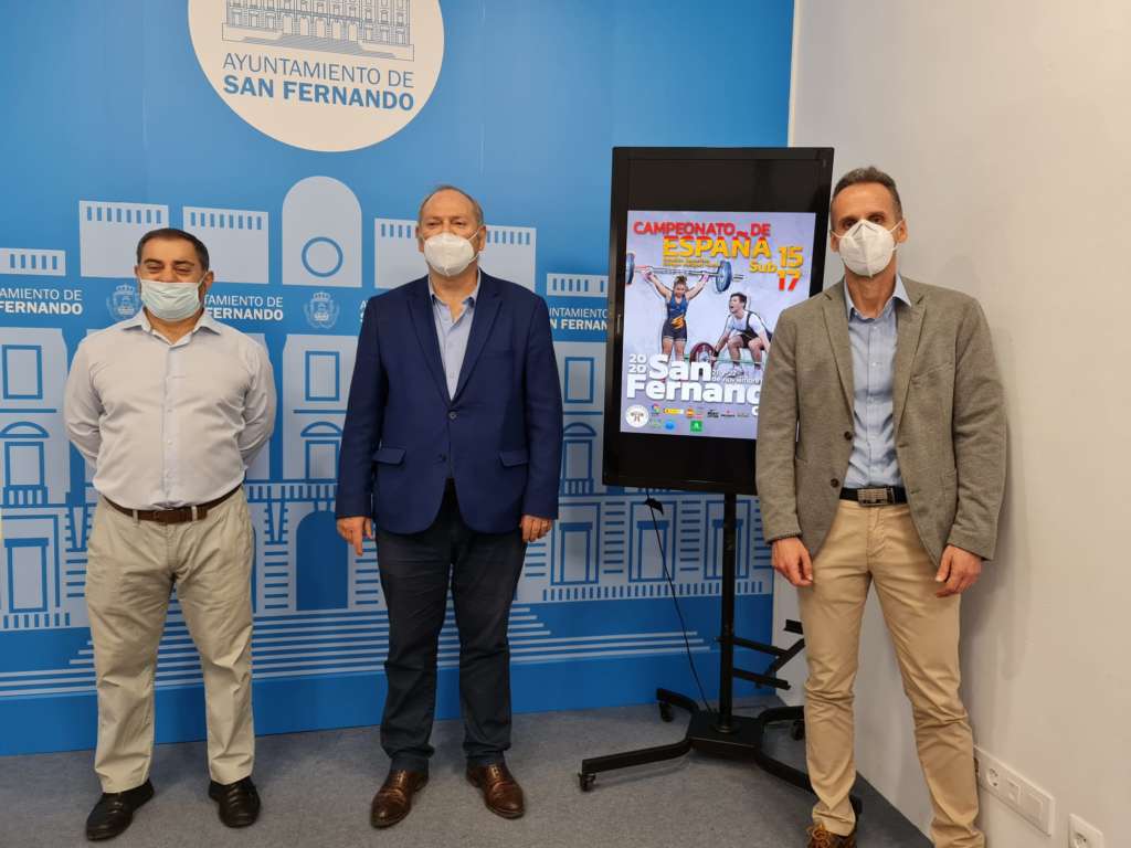 El 21 y el 22 de noviembre se celebrará en San Fernando el Campeonato de España Sub 15 y Sub 17. Este jueves el concejal de Infraestructura y Espacios Deportivos, Antonio Rojas, y el concejal de Actividades Deportivas, Francis Posada han presentado junto al secretario del Club de Halterofilia de San Fernando, Lorenzo Duro, este campeonato que se celebra por primera vez en la provincia de Cádiz.