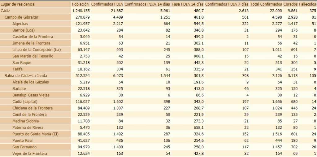 En cuanto a la tasa de incidencia de la Covid-19 por cada 100.000 habitantes se sitúa en 258 estando bastante por debajo de la tasa provincial que asciende a 408,7 puntos