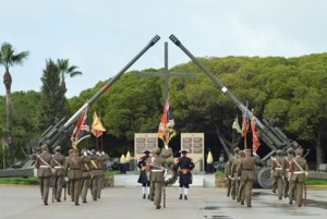 Presidido por el Teniente General Jefe de la Fuerza Terrestre, José Rodríguez García, la parada se realizó con las medidas de seguridad que la situación actual exige, formando una unidad compuesta por una batería a dos secciones, escuadra, banda de guerra, guiones y banderines del Regimiento.