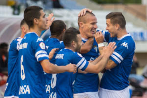 A pesar del dominio azulino, Nauzet apenas tuvo que hacer intervenciones. Sin embargo, sobrepasada la media hora de juego, un saque de esquina botado cerrado por Pepe Bernal lo peinaba en el primer palo Biabiany para la llegada de Lolo González, que empujó el esférico a la red sin oposición para poner a los azulinos por delante.