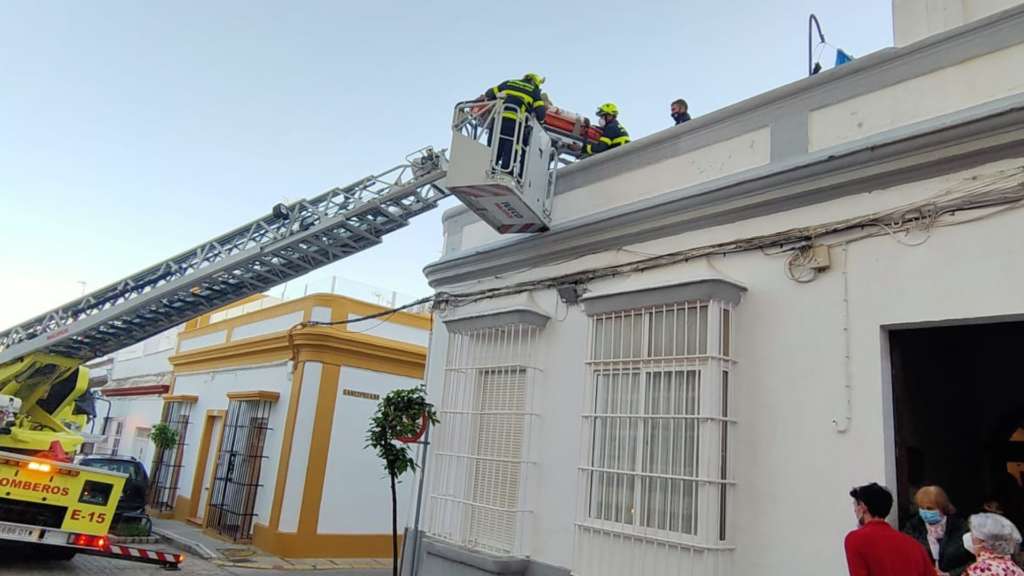 Efectivos del Parque de Bomberos de San Fernando intervinieron, en la jornada de ayer sábado 1 de enero, en el rescate de una persona caída en la azotea de una vivienda en calle Juan de Mariana.
