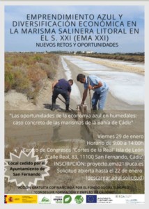 Esta actividad titulada Las oportunidades de la economÃa azul en humedales: caso concreto de las marismas de la BahÃa de Cádiz se llevará a cabo en el Centro de Congresos el viernes 29 de enero de 9:00 a 14:00 horas si las condiciones sanitarias lo permiten.