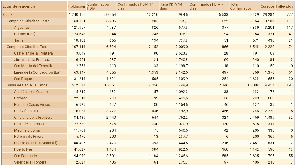 La Junta de Andalucía da a conocer los datos nuevos los lunes tras dos días sin realizar recuentos de los municipios, fines de semana que no se realizan el mismo número de pruebas PCR que días laborables, añadiendo también el colapso que ya existen en los hospitales.