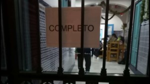 12. El cartel de completo se encuentra colocado en la puerta de acceso durante todos los días del año. La persona que llega allí no recibe ninguna otra orientación que la de “No hay plaza”.