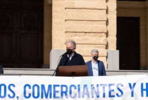 El portavoz de Hisafe, (sector hostelero de la Asociación de Comerciantes de San Fernando) fue el encargado de leer el manifiesto de la recién creada asociación, y que según declaró, “creo que está dando voz a todos los 636 establecimientos hosteleros isleños, mediante este manifiesto queremos hacer llegar nuestras quejas ya que los hosteleros “no aguantamos más sin las ayudas directas no podemos subsistir”
