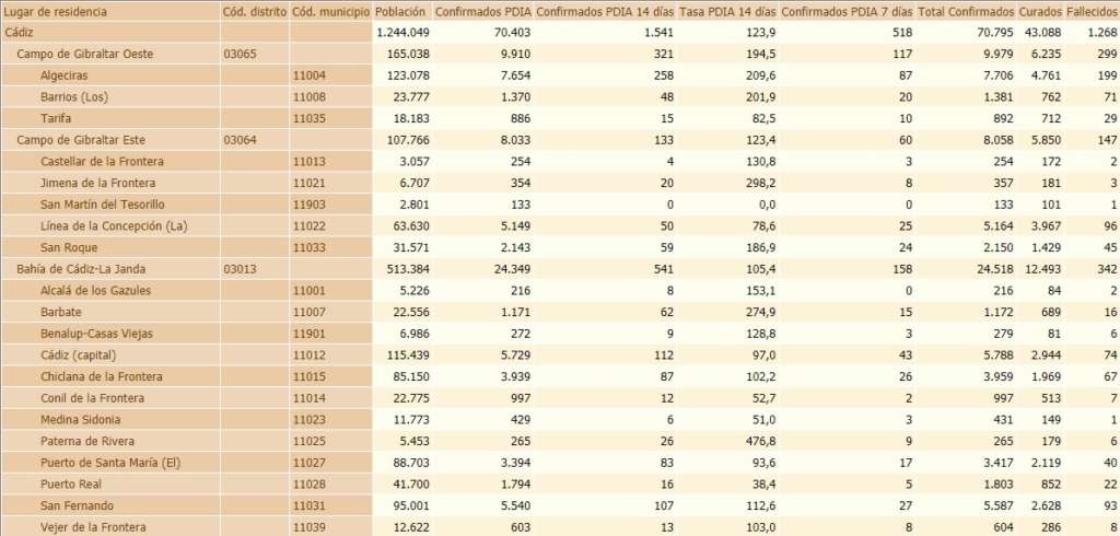 Según los datos de esta jornada por parte de la Junta  a la tasa de incidencia en San Fernando, que ya bajó la barrera de los 1.000 contabilizando en 810,5 puntos el lunes 16 de febrero, hoy se sitúa en 112,6 puntos, bajando 15,8 puntos en 24 horas. Cifras más que alentadoras ya que sigue bajando tal y como lleva ocurriendo desde hace dos semanas.