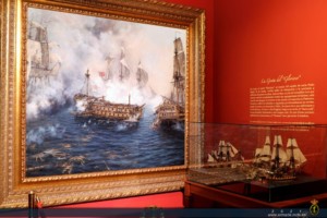 La escena representa fielmente, a escala 1/100, la composición del cuadro, donde aparecerán los buques Ingleses: Warwich, Lark y Montagu rodeando a 'El Glorioso', contando con 300 figuras a escala, representando las tripulaciones.