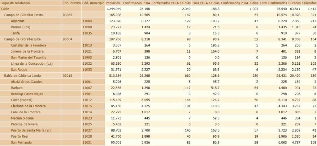 Según los datos facilitados por la Junta de Andalucía, se han registrado cuatro nuevos casos positivos en la covid-19 en 24 horas, sumando un total de 6.003 personas desde que diese comienzo la pandemia, superando ya la barrera de los 6.000 contagios, siendo 36 personas nuevas con la covid-19 en una semana.