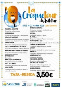 con croquetas de langostinos y espinacas; Las Cositas Buenas de Galea, con croquetas de Solomillo al Pedro Ximénez; Cafetería Bar Puente de Hierro, con croquetas de cordero al estilo árabe y reducción de granada; Bar Bolerín, con las Mordiditas; Abacería la Cañaílla, con croquetas de atún encebollado: Lito's Corner, con croquetitas de Tortillitas de Camarones; Lima Limón, con croquetas de piña colada con helado y caramelo crujiente; Bar La Sacristía, con croquetas de sangre encebollada con confitura de tomate; La Teja, con croquetas de pollo y jamón; El Ancla con croquetas de queso Payoyo con nueces; Marisquería 3x5, con croquetas de chicharrones de atún de almadraba; La Mar de Fresquita, con croquetas de espinacas con piñones; La Ola, con croquetas de caballa en adobo sobre fango; Pa' Picar, con croquetas de langostinos y ortiguillas; Los Tarantos, con croquetas de cocido; Asador el Gordo, con sus croquetas de Semana Santa; la Salina de San Vicente, con croquetas de bacalao y salmón con salsa de mostaza al tomillo limón, y El Triskel, con sus croquetas de pollo, jamón ibérico y huevo con guarnición de pisto de pimiento asado.