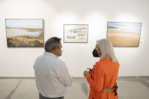 La muestra consta de 20 cuadros, doce óleos y ocho acuarelas, predominando formatos grandes, cuya temática está centrada en playas, marismas y los paisajes del litoral isleño.