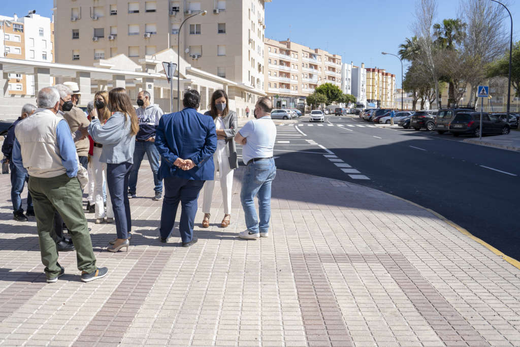 La alcaldesa, Patricia Cavada, ha visitado este jueves 13 de mayo las obras que el Ayuntamiento ha terminado de ejecutar en la calle José Ramos Borrero, incluidas en el Programa de Refuerzo de Firmes y Asfaltado y que comprende la actuación en una veintena de calles y avenidas de la ciudad. Cavada ha estado acompañada por la teniente de alcaldesa, Regla Moreno, los concejales de Desarrollo Urbano e Infraestructura y Mantenimiento Urbano, Claudia Márquez y Javier Navarro, respectivamente, el presidente de la Federación de Asociaciones de Vecinos “Isla de León”, y otros representantes de la federación, así como por los presidentes de las asociaciones de vecinos Las Palmeras, Constitución y Los Olivos.