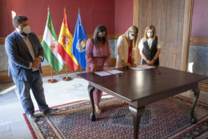 La alcaldesa de San Fernando, Patricia Cavada, y la presidenta de la Asociación Párkinson Bahía de Cádiz, Dolores Garzón, han firmado el convenio regulador que permitirá a esta entidad social recibir otros 90.000 euros del presupuesto del Ayuntamiento para la financiación de las obras del nuevo centro asistencial de Parkinson.