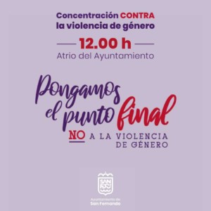 Por ello, desde el Ayuntamiento de San Fernando convocan este viernes a las 12:00 horas en el atrio de las Casas Consistoriales una concentración y un minuto de silencio ante los últimos asesinatos por violencia de género.