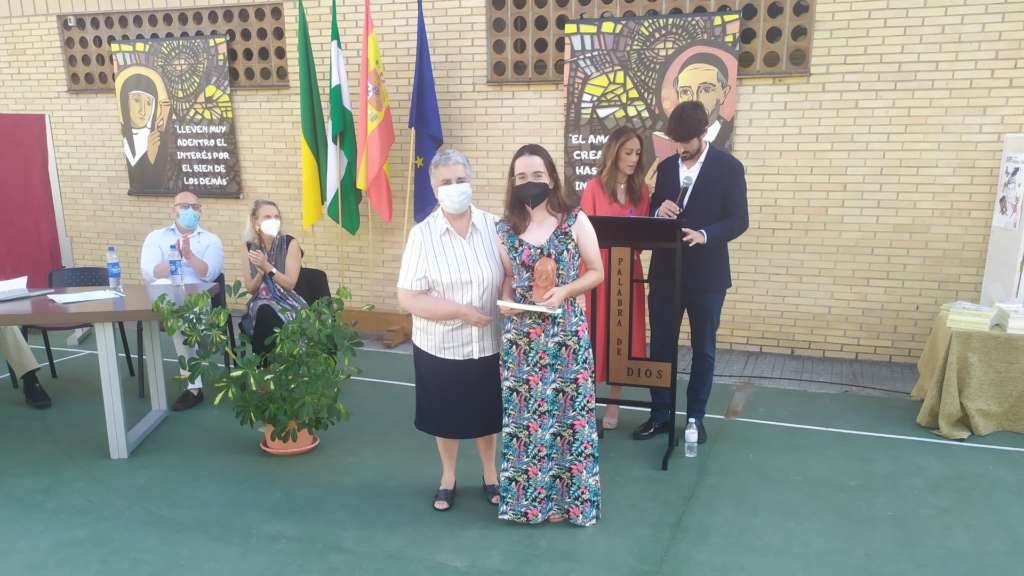 La alumna de 4º ESO del colegio Liceo, Silvia Barnes Franco, con su relato titulado El tiovivo, se alzó con el Primer Premio del XVIII Certamen de Relatos Cortos, Memorial Sor María Aguilar, cuyos premios se han entregado este pasado sábado, 26 de junio, en el patio del centro educativo Luisa Marillac (Puerto de Santa María).