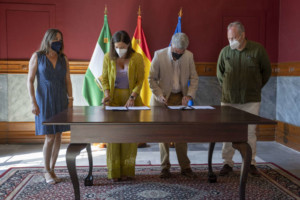 La alcaldesa, Patricia Cavada, y el presidente de Acosafe, Manuel Luna, han sido los encargados de suscribir este acuerdo por el cual la aportación municipal para las acciones puestas en marcha por esta asociación aumenta este año a 50.000 euros. A la firma asistieron también la delegada de Desarrollo Turístico y Empleo, Regla Moreno, y el concejal de Comercio, Antonio Rojas.