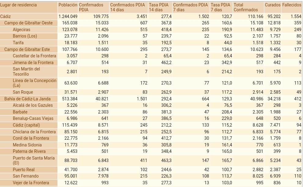 La tasa de incidencia sigue descendiendo y en esta ocasión ha bajado 21,1 puntos para situarse en 226,3, es decir, casi 25 puntos por debajo de los 250 que están considerados como riesgo extremo de contagios.