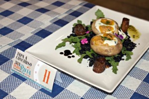Primer premio: Fue otorgado para el 'Bar 'Alari', ubicado en Plaza de las alegrías s/n, con su tapa: Champiñones confitado a baja temperatura, relleno de crema de queso azul y foei sobre tierra de ajos tostados (El Bosque).