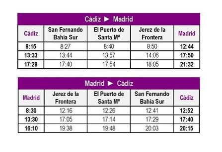 Desde el 18 de octubre dejará de circular la cuarta frecuencia por sentido (salida de Cádiz a las 10:50 horas y de Madrid a las 11:05 horas) que Renfe puso en servicio el pasado 7 de junio como refuerzo de verano.
