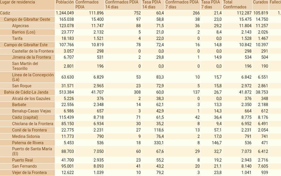 Así, este jueves 16 de septiembre hay que contabilizar dos nuevos positivos por la covid-19 con respecto a ayer y en total ya son 8.140 personas las que se han contagiado desde marzo de 2020. La nota a destacar de este jornada es que se han notificado por parte del Servicio Andaluz de Salud hasta 45 curados con respecto a ayer miércoles y la cifra alcanza ya los 7.650.