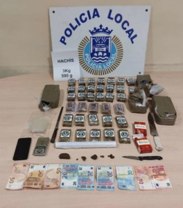 Del mismo modo, la Policía Local procedió a abrir e inspeccionar el trastero al que acudía el responsable de los hechos antes de cada venta de sustancia estupefaciente, en el que se incautaron de 35 placas de hachís de 100 gramos cada una (la cantidad total de sustancia estupefaciente aprehendida asciende a 3,590 kilogramos), así como varios trozos de hachís cortados y preparados para la venta, una balanza de precisión, varios cuchillos de gran tamaño utilizados para cortar la sustancia estupefaciente, y film transparente para envolver la droga. Además, se le intervino una cajetilla de tabaco un total de 250 euros fraccionados en billetes, fruto presumiblemente de las ventas de sustancia estupefaciente.