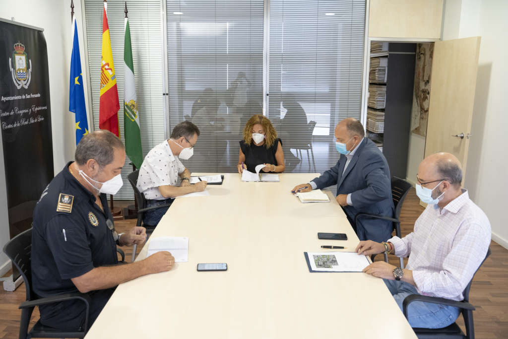 La concejala de Fiestas y Tradiciones del Ayuntamiento de San Fernando, Mar Suárez, y los representantes de la Policía Local y del servicio de Protección Civil, se han reunido hoy con el presidente del Consejo de Hermandades, Manuel Antonio García, y el hermano mayor de la Hermandad de los Desamparados, Antonio Martínez, para coordinar todo el dispositivo de cara a la celebración de la tradicional procesión de la Virgen de las Mercedes el próximo viernes 24 de septiembre.