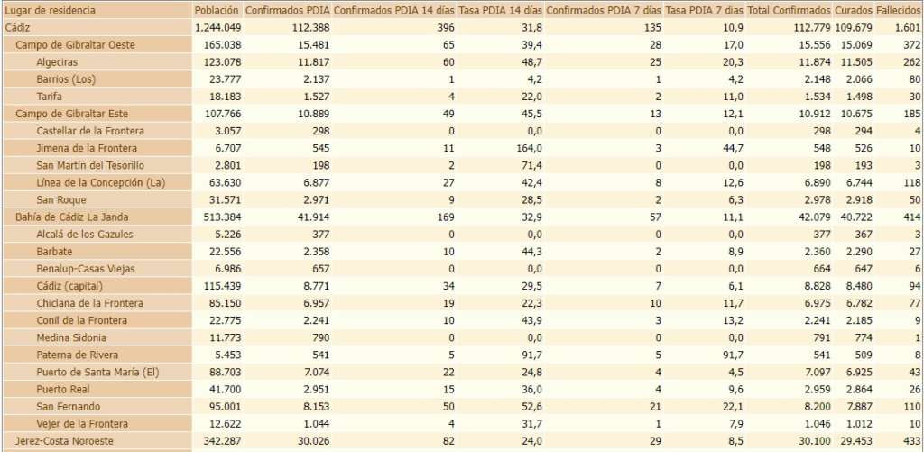 La tasa de incidencia en San Fernando se fija en 52,9 puntos, bajando 2, 4 en las últimas 24 horas. Este jueves 30 de septiembre San Fernando al igual que en la jornada anterior vuelve a salir de la zona riesgo bajo, al superar los 50 puntos.