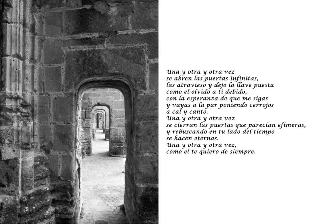 Es esta tercera belleza la que se intenta plasmar en las veinte obras que forman la exposición “La imagen escrita”, que ahora -y hasta el día siete- puede verse en la localidad serrana de Villaluenga del Rosario. Esa belleza que se exterioriza, que va más allá de la apariencia, que tiende a pasar desapercibida porque no la vemos, porque a veces tampoco queremos verla. La que está impresa en una fachada antigua, en una casa en ruinas, o en una puerta vieja, pero por la cual penetra un halo de luz que le da un encanto suficiente para que un fotógrafo se detenga a mirar y a inmortalizar, y eso luego sea tan bello como para que dé origen a un poema. Basta sólo con prestarle atención.