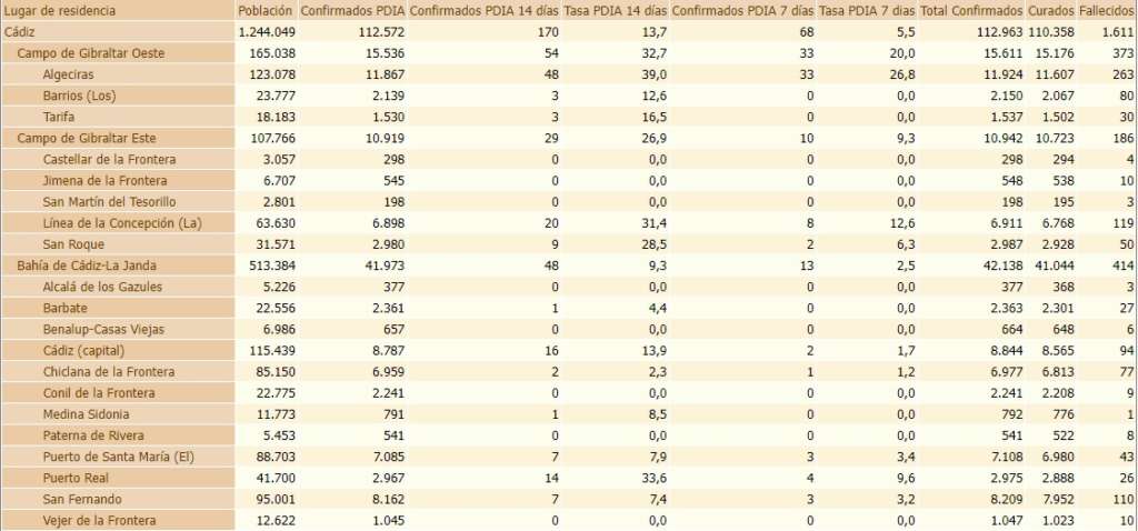 El ejemplo más claro se puede comprobar en San Fernando, donde la tasa de incidencia, según los datos aportados por la Junta, se ha situado este miércoles 13 de octubre en 7,6 contagios por cada 100.000 habitantes, es decir, una cifra nimia y que nada tiene que ver con las que se han registrado en las cinco olas que se han dado con la crisis sanitaria iniciada en marzo de 2020. Y es que desde el pasado lunes –ayer 12 de octubre no hubo datos al ser festivo- dicha tasa ha descendido hasta 10,5 puntos en la localidad isleña.