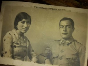 En ella aparece una mujer y un hombre vestido de uniforme que todo apunta a que es un matrimonio.