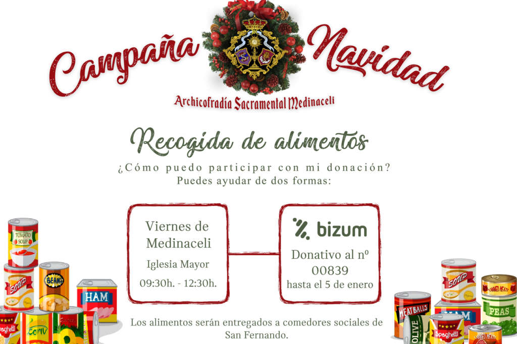 La Archicofradía Sacramental de Medinaceli ha organizado para esta Navidad una campaña de recogida de alimentos a beneficio de los comedores sociales de San Fernando.