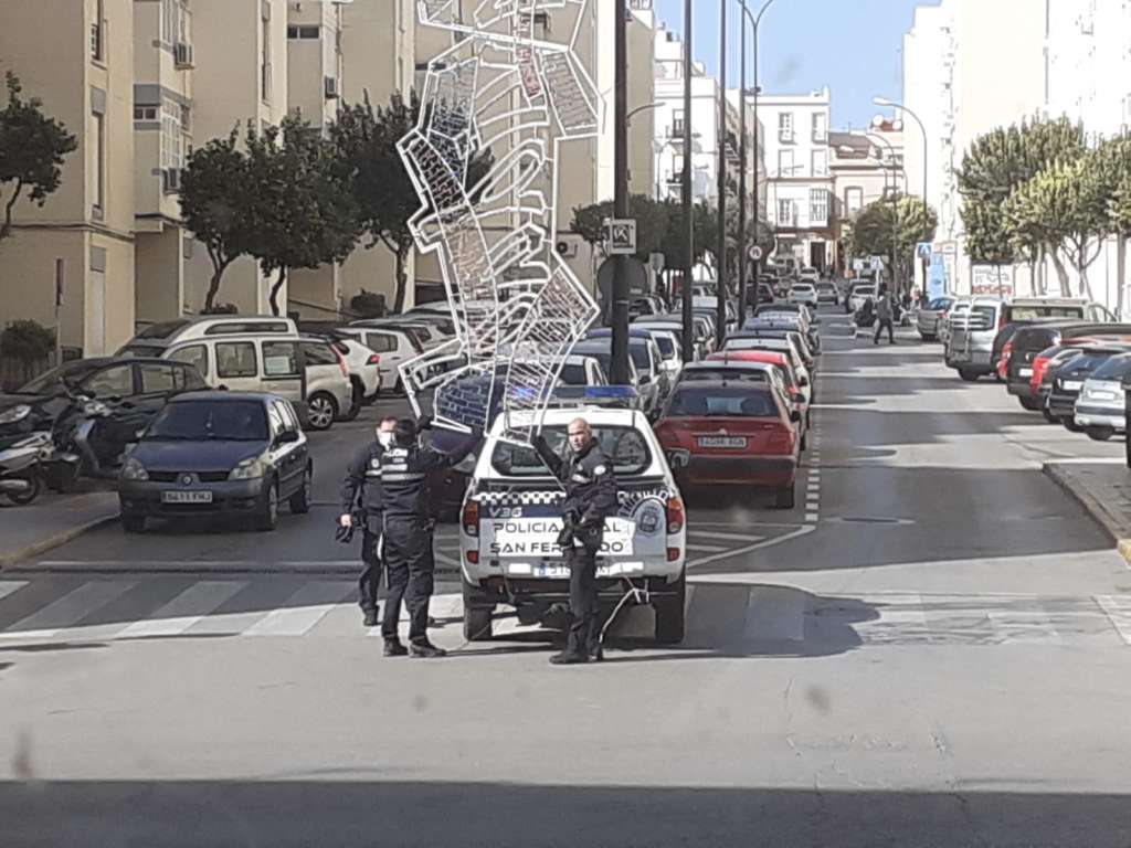 Por otro lado, efectivos de la Policía Local de San Fernando tenían que intervenir tras la caída de uno de los adornos navideño colocado por el Ayuntamiento de San Fernando en la avenida Manuel de Falla.