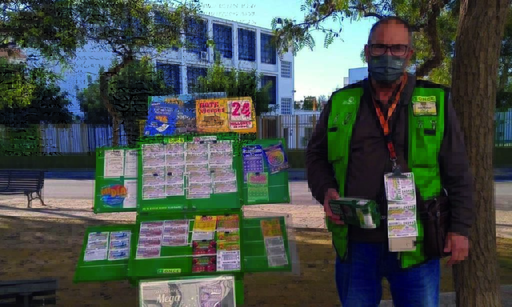 Juan Manuel Otero, afiliado a la ONCE y vendedor desde 2015, llevó la suerte a la calle San Federico de San Fernando, donde ha repartido 20 premios de 35.000 euros, en su mayor parte a clientes del Bar Vito.