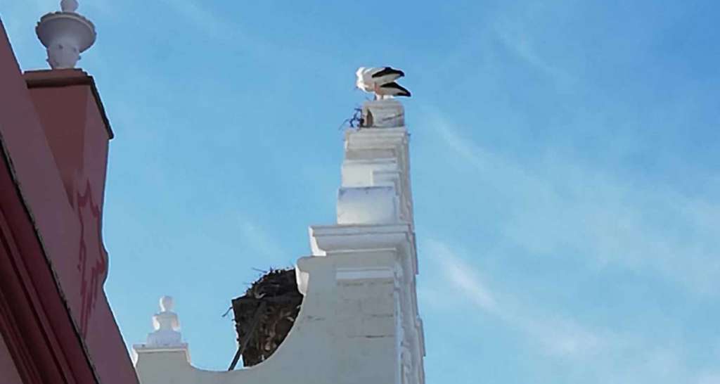 Varias semanas han pasado desde que con motivo de las obras de pintura que se estaban realizando en la iglesia de El Carmen en San Fernando, se retirara el nido de las cigüeñas que llevan año presidiendo la fachada. Además con dicha retirada se colocaron pinchos disuasorios para la avifauna con la finalidad de impedir que se quedaran.