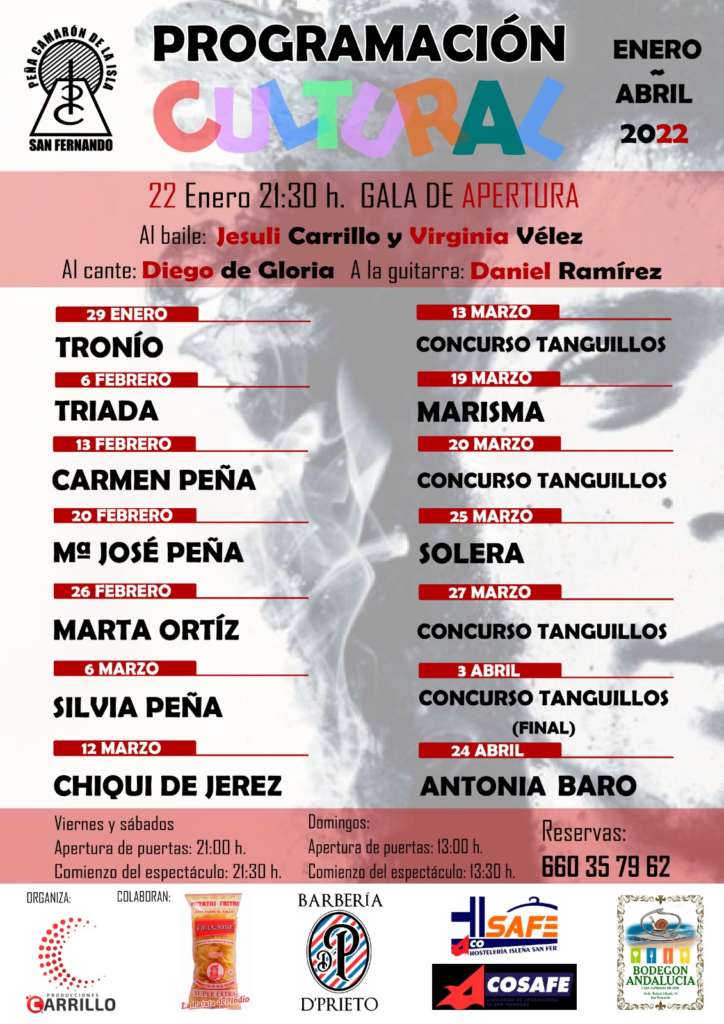 La Peña Camarón de La Isla presenta su programación para el primer cuatrimestre de 2022, en la que serán protagonistas las academias de baile de la provincia