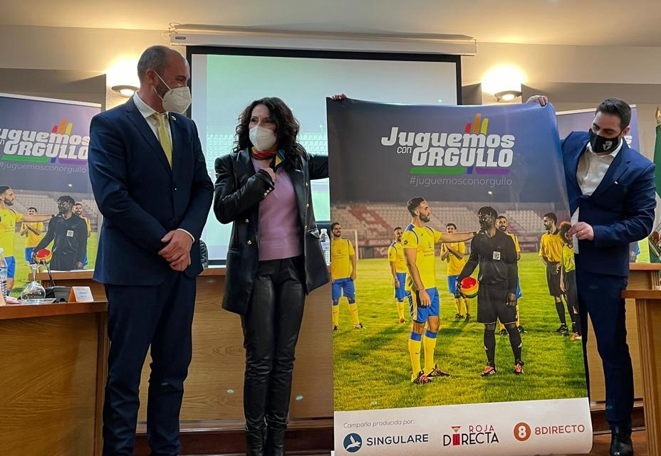 La Consejería de Igualdad ha participado desde el inicio en el proceso de creación y difusión de la campaña, como muestra de su compromiso y su apuesta por la diversidad y la inclusión. Un apoyo que Roja Directa ha querido reconocer nombrando a Rocío Ruiz “madrina” de la campaña. Y como tal, ha entregado brazaletes con la bandera LGTBI y el logotipo de la Junta a la entidad, que serán repartidos entre los capitanes de los clubes de fútbol españoles para que en los próximos partidos salgan al campo con ellos.
