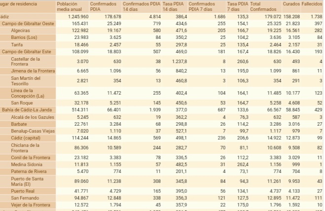 Por provincias: en Almería (86 hospitalizaciones, de las que 8 en UCI), Cádiz (141 hospitalizaciones, de las que 14 en UCI), Córdoba (119 hospitalizaciones, de las que 17 en