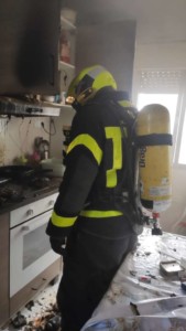 El incendio se produce en una sartén con aceite afectando a una campana extractora y muebles contiguos utilizando dos extintores. Afortunadamente sin daños personales.