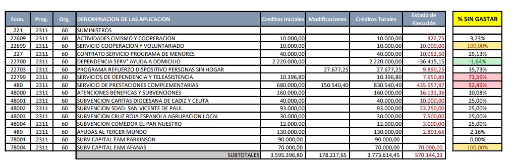 Pues bien, de esa cantidad el gobierno de Patricia Cavada tan solo ha utilizado 435.957 euros; “es decir, ha dejado en el banco sin destinar a ayudar a quienes peor lo están pasando el 52,49 por ciento del total presupuestado, unos 450.000 euros”.