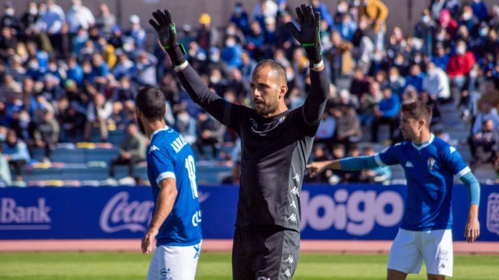 El portero azulino José Perales cumple 50 partidos en el San Fernando CD