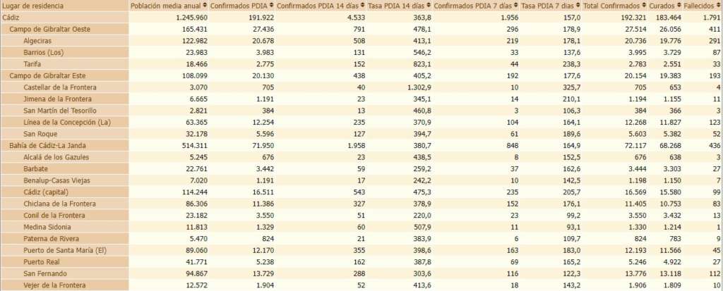 El Servicio Andaluz de Salud notifica que en la jornada de este martes 29 de marzo la tasa de incidencia de contagios por cada 100.000 habitantes se fija de nuevo en 303.06 puntos subiendo 13,16 respecto al pasado viernes 25 de marzo, ya que ayer lunes no subieron los datos a la plataforma.