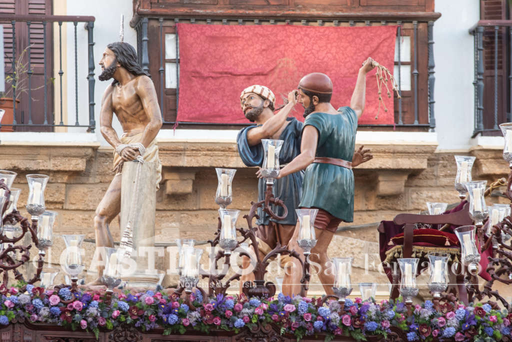 La Hermandad de Columna abría su Estación de Penitencia a las 18.30 horas con una Plaza de la Iglesia a rebosar de público, al igual que ocurrió en el total de su itinerario. Un cortejo que con el paso de los años se engrandece y con un 'Barrio de La Iglesia' que se entrega cada Domingo de Ramos con su hermandad.