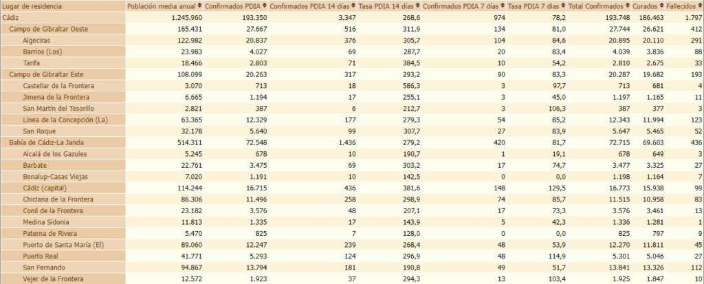 El Servicio Andaluz de Salud notifica que en la jornada de este martes 5 de abril la tasa de incidencia de contagios por cada 100.000 habitantes se fija en 190,8 puntos bajando 43,2 respecto al pasado viernes 1 de abril.