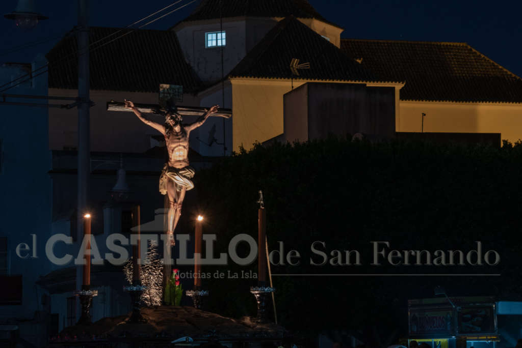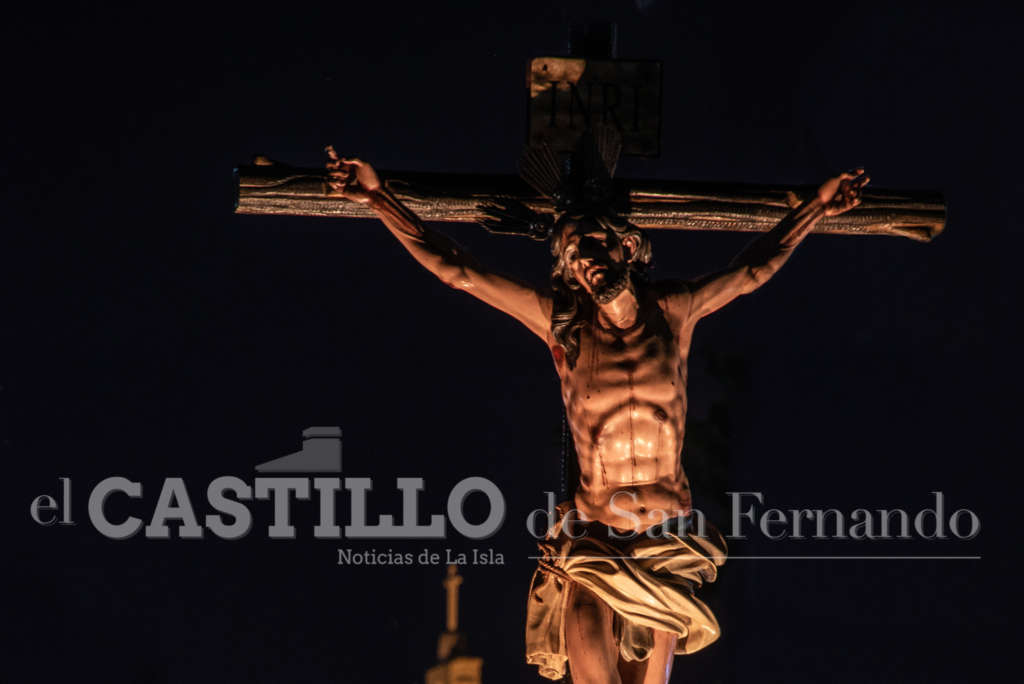 La Iglesia Vaticana y Castrense de San Francisco casi abre las puertas a una nueva ‘madrugá’. La Hermandad de Expiración, con un itinerario donde destaca el recogimiento por la ausencia de luz en su itinerario y el respeto que la ciudadanía le demuestra a la misma nos recordaba que Jesucristo está a punto de morir en La Isla.