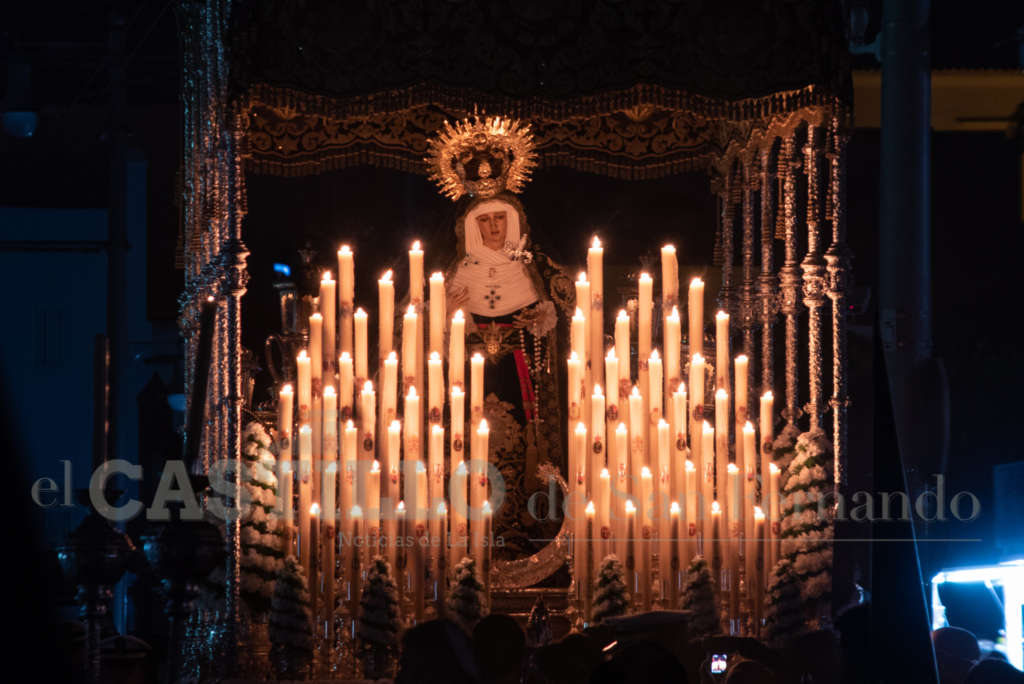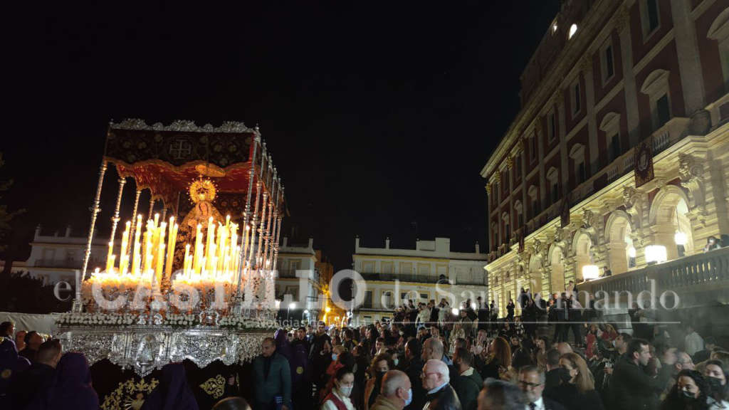 El recorrido de vuelta, que cada año cuenta con más fieles, tuvo su punto álgido en su barrio donde cada año es esperado por todo un barrio que, seguramente, cuentan los días que puedan faltar para ver a su Dolorosa, María Santísima de la Paz, acompañando a su hijo cada Jueves Santo por las calles de La Isla.